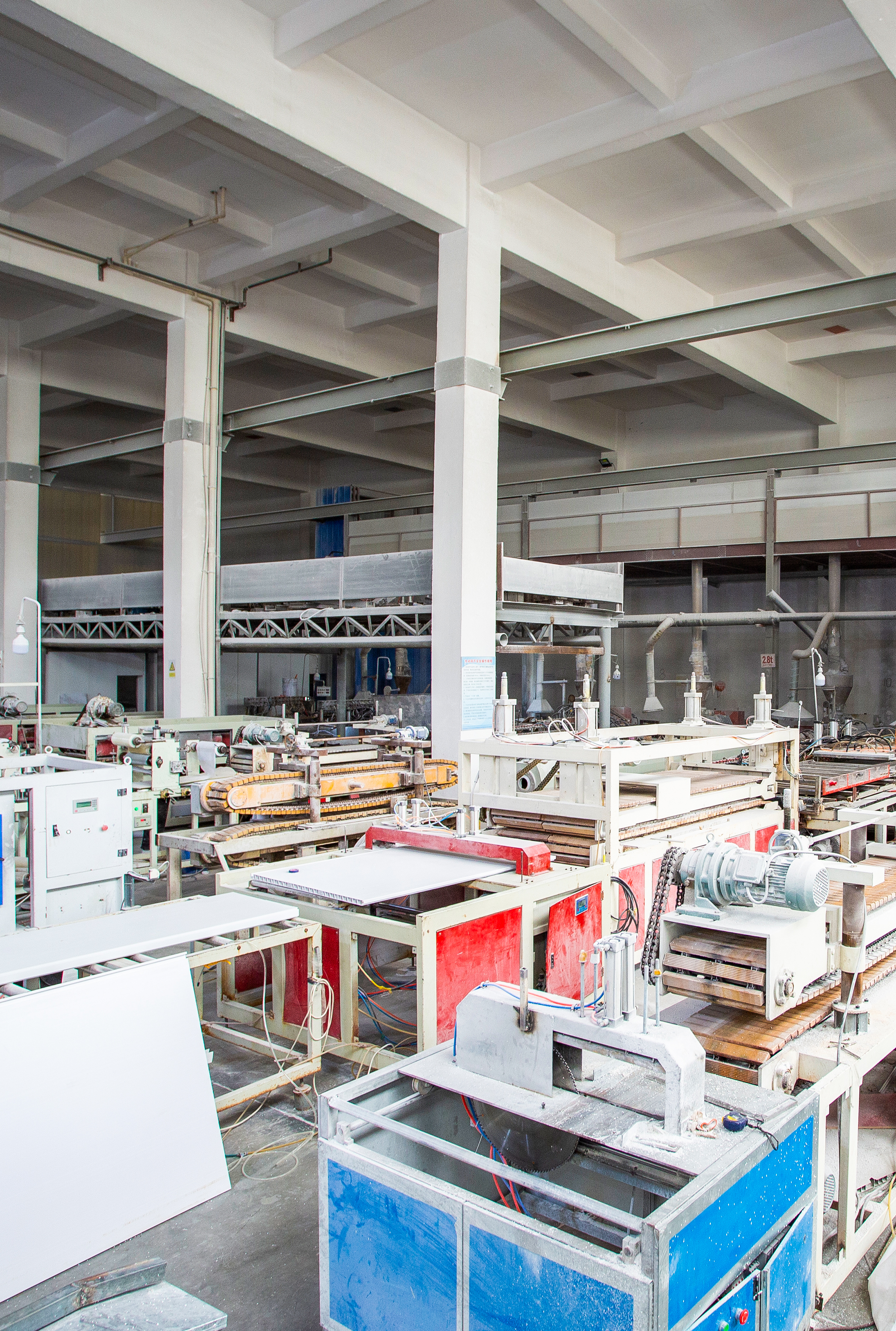Завод занимает площадь 6000 квадратных метров и оснащен 32 полностью автоматическими экструзионными линиями (включая 10 экструдеров из 65, 2 экструдера из 80 и 20 экструдеров из 51). (включая 10 экструдеров 65, 2 экструдера 80 и 20 экструдеров 51), которые могут обеспечить эффективное непрерывное производство ПВХ, ДПК и других материалов. Опираясь на комбинацию нескольких моделей, он реализует комплексные операции: от смешивания, экструдирования, охлаждения и формования до резки.